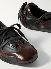 Paneled smooth and patent-leather sneakers Brown
