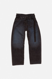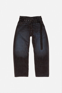 Belted jeans cut to a relaxed fit with a low waist, wide leg, and long length. Crafted from flocked denim and finished with a matching belt and leather buckle. - Relaxed fit - Low waist - Wide leg - Matching belt with leather buckle - Model is 181 cm / 5'9 and wears a size 36 - Style ID: FN-WN-TROU001500 - Made from recycled cotton - Shell: 20% Viscose, 20% Polyester, 60% Cotton