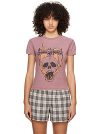 Organic cotton jersey T-shirt. Exposed seams and fading throughout. · Rib knit crewneck and cuffs · Logo graphic printed at front Supplier color: Mauve pink