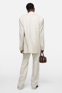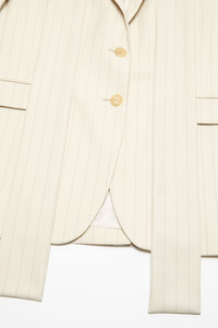 Single-breasted suit jacket with matching scarf attachment, crafted from classic sartorial wool with a seasonal pinstripe. Complete with front pockets. Cut to a regular fit and hip length. - Regular fit - Hip length - Matching scarf attachment - Seasonal pinstripe - Front flap pockets - Chest welt pocket - Two button closure - Model is 178 cm / 5'10 and wears a 36 - Style ID: RW-WN-SUIT000039 - Shell: 100% Wool, Lining: 100% Viscose