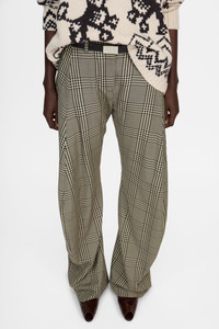Tailored trousers are crafted from a fluid wool blend, detailed with a seasonal bi-colour check pattern. Cut to a regular fit with a mid waist, curved leg and long length. - Regular fit - Mid waist - Curved leg - Long leg - Check pattern - Front and back pockets - Hook & bar and zipper closure - Model is 179 cm / 5'11 and wears a size 36 - Style ID: FN-WN-TROU001366 - Shell: 52% Viscose, 48% Wool