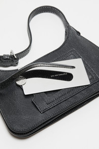 Platt micro shoulder bag features a flat minimalist silhouette, a softly curved top with structured accordion folds on the side and base. Crafted from leather with a crackled finish. Complete with a leather Acne Studios logo on the front and a decorative removable mirror on the back. - Cracked leather - Acne Studios logo - Folded base and sides - Decorative removable mirror - Zipper closure - Measurements: 13,5 cm; 22 cm; 2 cm - Strap: 48 cm - Made in Italy - Protective dustbag included - Style ID: FN-WN-BAGS000414 - Shell: 100% Cow leather, Lining: 50% Polyurethane, 50% Polyester