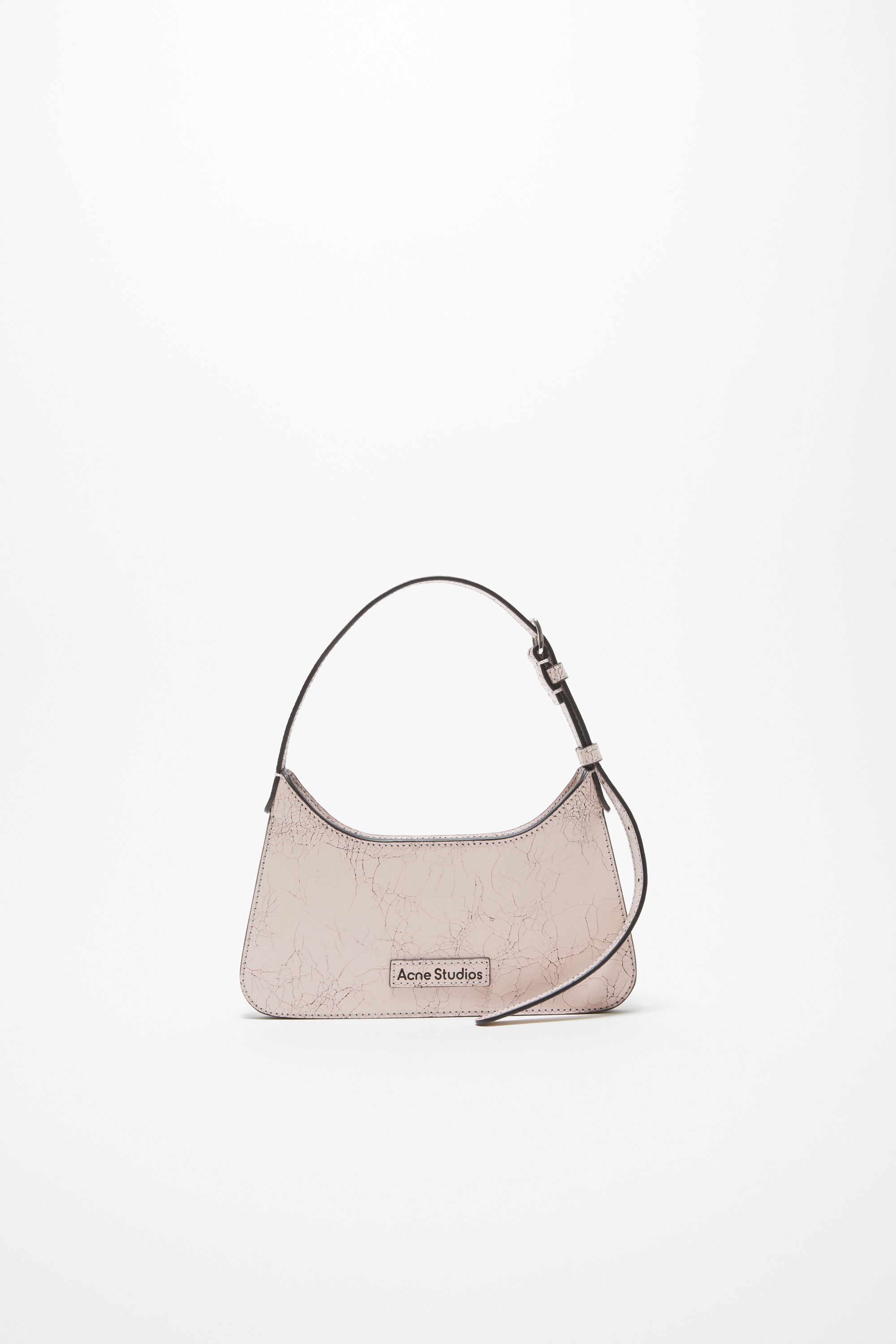 Platt micro shoulder bag features a flat minimalist silhouette, a softly curved top with structured accordion folds on the side and base. Crafted from leather with a crackled finish. Complete with a leather Acne Studios logo on the front and a decorative removable mirror on the back. - Cracked leather - Acne Studios logo - Folded base and sides - Zipper closure - Decorative removable mirror - Measurements: 13,5 cm; 22 cm; 2 cm - Strap: 48 cm - Made in Italy - Protective dustbag included - Style ID: FN-WN-BAGS000414 - Shell: 100% Cow leather, Lining: 50% Polyurethane, 50% Polyester