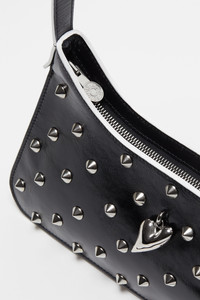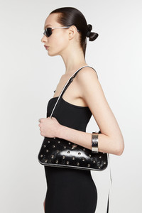Platt mini shoulder bag is crafted from leather adorned with studs and an Acne Studios charm. Constructed with a distinctive flat silhouette, and softly curved top with structured accordion folds on the side and base. Complete with a leather Acne Studios logo on the front and a decorative removable mirror on the back. - Leather with soft crinkle - Studded - Acne Studios charm - Folded base and sides - Zipper closure - Decorative removable mirror - Measurements: 19 cm; 30 cm; 3 cm - Strap: 46 cm - Made in Italy - Protective dustbag included - Style ID: FN-WN-BAGS000462 - Shell: 100% Calf leather, Lining: 50% Polyurethane, 50% Polyester