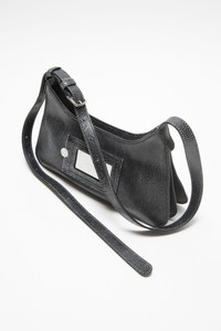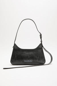 Platt mini shoulder bag features a flat minimalist silhouette, a softly curved top with structured accordion folds on the side and base. Crafted from leather with a crackled finish. Complete with a leather Acne Studios logo patch on the front and a decorative removable mirror on the back. - Cracked leather - Acne Studios logo patch - Folded base and sides - Zipper closure - Decorative removable mirror - Measurements: 30 cm; 19 cm; 3 cm - Strap: 55 cm full length approx. - Made in Italy - Protective dustbag included - Style ID: FN-WN-BAGS000413 - Shell: 100% Cow leather, Lining: 50% Polyurethane, 50% Polyester