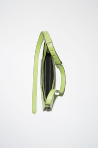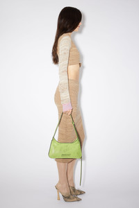 Shoulder bag is crafted from suede leather with a cracked finish and a leather Acne Studios logo patch. The platt shoulder bag presents a minimalistic silhouette with sculptural folds and a decorative removable mirror at the back. - Cracked suede leather - Acne Studios logo silicon patch - Folded base and sides - Decorative removable mirror - Zipper closure - Measurements: 30 cm; 19 cm; 3 cm - Strap: 27 cm full length approx. - Made in Italy - Style ID: FN-WN-BAGS000332 - Shell: 100% Cow leather, Lining: 50% Nylon, 50% Polyurethane