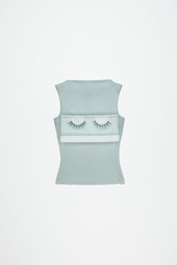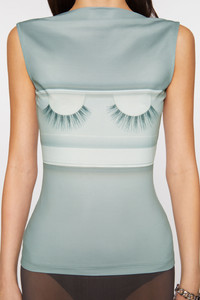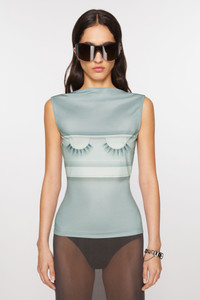 Sleeveless top is cut to a slim fit and waist length. Adorned with an all-over print in collaboration with artist Katerina Jebb. Crafted from lightweight stretchy lycra with a seamless construction. - Slim fit - Long length - Sleeveless - In collaboration with artist Katerina Jebb - All over print - Model is 178 cm / 5′10 and wears a size S - Style ID: FN-WN-TSHI000672 - Main material made from recycled polyester. - Shell: 87% Polyester, 13% Elastane