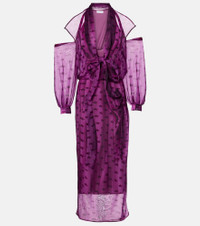 Acne Studios has earned a firmly established cult following through its cool Scandinavian aesthetic. This midi dress features a sheer fabric adorned with star prints, and the silhouette is finished with a halterneck and a plunging neckline with a ribbon. Product Details - Material: 100% nylon - Care instructions: machine wash at 30 degrees - Made in Portugal - Designer color name: Purple - Item color: purple - Lining: 80% nylon, 20% elastane - Cuff: two buttons - Closure: concealed zipper, zipped back - Self-tie collar - Item number: P01076443 Size & Fit - True to size - Semi-sheer - Loose bodice, fitted skirt - Please note: Slip dress is fitted - Partly stretchy fabric - The model seen in the picture is 178cm-5'10" and wearing a size XS