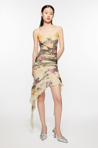 Strap dress features a seasonal animation printed crafted from a lightweight crepe fabric. Characterised by flowy asymmetric hem and cut-out back. Cut to a regular fit and above the knee length. - Regular fit - Above the knee length - Adjustable straps - Seasonal animation print - Cut-out closure at the back - Asymmetric hem - Model is 176cm/ 5'9.5 and wears a size 36 - Style ID: FN-WN-DRES001330 - Shell: 100% Viscose, Lining: 100% Polyester