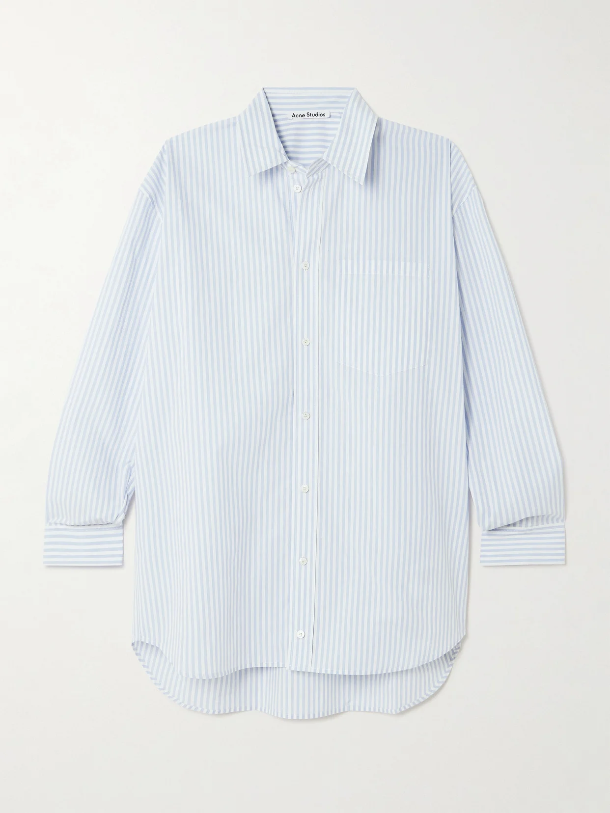 Acne Studios' classic shirt is printed with the brand's logo at the back, alongside the year and city of its founding. It's made from crisp cotton-poplin patterned with stripes and cut for a loose fit.