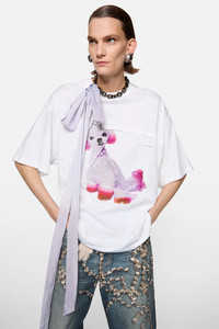 Crewneck short-sleeve T-shirt featuring seasonal ornament print and folded details across the chest. Crafted from organic cotton jersey with a subtly textured, vintage-inspired surface. Complete with ribbed neckline and cut to a regular fit. - Regular fit - Crewneck - Short-sleeve - Seasonal print - Folded details - Ribbed neckline - Model is 181 cm / 5'9 and wears a size S - Style ID: FN-WN-TSHI000824 - Shell: 100% Cotton