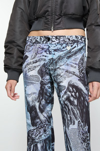 Trousers are crafted from a fluid crepe fabric, adorned with a seasonal print and branded heart charm at the belt loop. Cut to a regular fit with a mid-waist, flared leg and long length. - Regular fit - Mid-waist - Flared leg - Long Length - Seasonal print - Branded heart charm - Button and zip fly closure - Model is 178cm/ 5'10 and wears a size 36 - Style ID: FN-WN-TROU001287 - Shell: 100% Viscose
