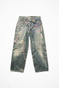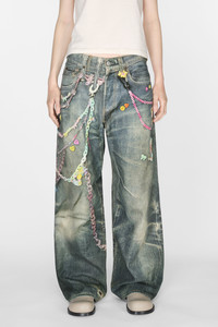 1981 fit jeans are cut to a baggy fit with a low waist, wide leg and long length. Detailed with a seasonal 'keychains' trompe l'oeil print, crafted from canvas cotton. - Baggy fit - Low waist - Wide leg - Long length - Trompe l'oeil print - 5-pocket construction - Model is 178 cm / 5'11 and wears a size 36 - Style ID: FN-WN-TROU001417 - Shell: 100% Cotton