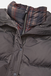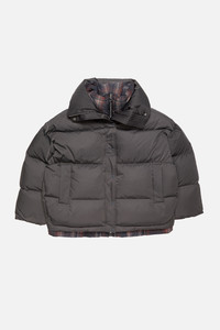 Puffer down jacket featuring an oversized, padded silhouette with an attached underlayer in a seasonal check pattern. Designed with a front zip and snap button closure, welt pockets, and finished with an Acne Studios logo at the back neckline. Cut to a regular fit. - Regular fit - Down puffer - Attached check underlayer with check pattern - Front zip and snap button closure - Welt pockets - Logo patch - Model is 180 cm / 5'9 and wears a size S - Style ID: FN-WN-OUTW001109 - Filling made from recycled down and recycled feathers - Shell: 100% Polyester, Contrast: 100% Polyester, Lining: 100% Nylon, Filling: 90% Duck down, 10% Duck feathers