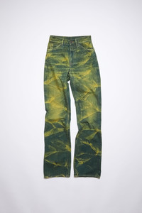 Acne Studios yellow/blue fit jeans feature a 5-pocket denim construction with a high waist, bootcut leg and long length. The 1977 jeans are crafted from rigid denim made of cotton with a seasonal garment dye finish. - Regular fit - High waist - Bootcut leg - Long length - Dyed garment finish - Zip fly - Model is 178 cm / 5′8 and wears a size 27/34 - Style ID: Acne Studios 1977 Jello - Made with 80% organically grown cotton and 20% recycled cotton. - Shell: 100% Cotton