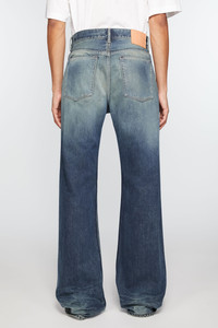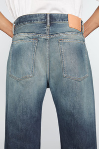2021M jeans are cut to a loose fit with a mid-waist, wide leg and long length. Crafted from rigid denim made of cotton. - Loose fit - Mid waist - Wide leg - Long length - 5-Pocket construction - Button fly - Model is 185cm/ 6'1 and wears a size 31/34 - Style ID: Acne Studios 2021M Broadway - Made from organically grown cotton. - Shell: 100% Cotton, Patch: 100% Cow leather