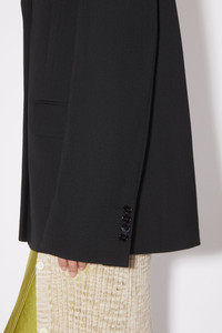 Single-breasted tailored jacket is crafted from a wool blend. Cut to a regular fit with soft tailored shoulders and below the hip length. - Regular fit - Below hip length - Single-breasted - Soft tailored shoulders - Button closure - Chest pocket - Front flap pockets - Full lining - Model is 177 cm / 5′9 and wears a size 36 - Style ID: FN-WN-SUIT000508 - Made from recycled polyester. - Shell: 55% Polyester, 45% Wool, Lining: 100% Viscose