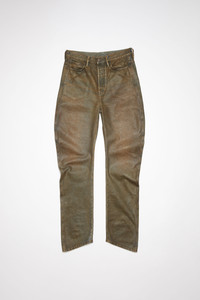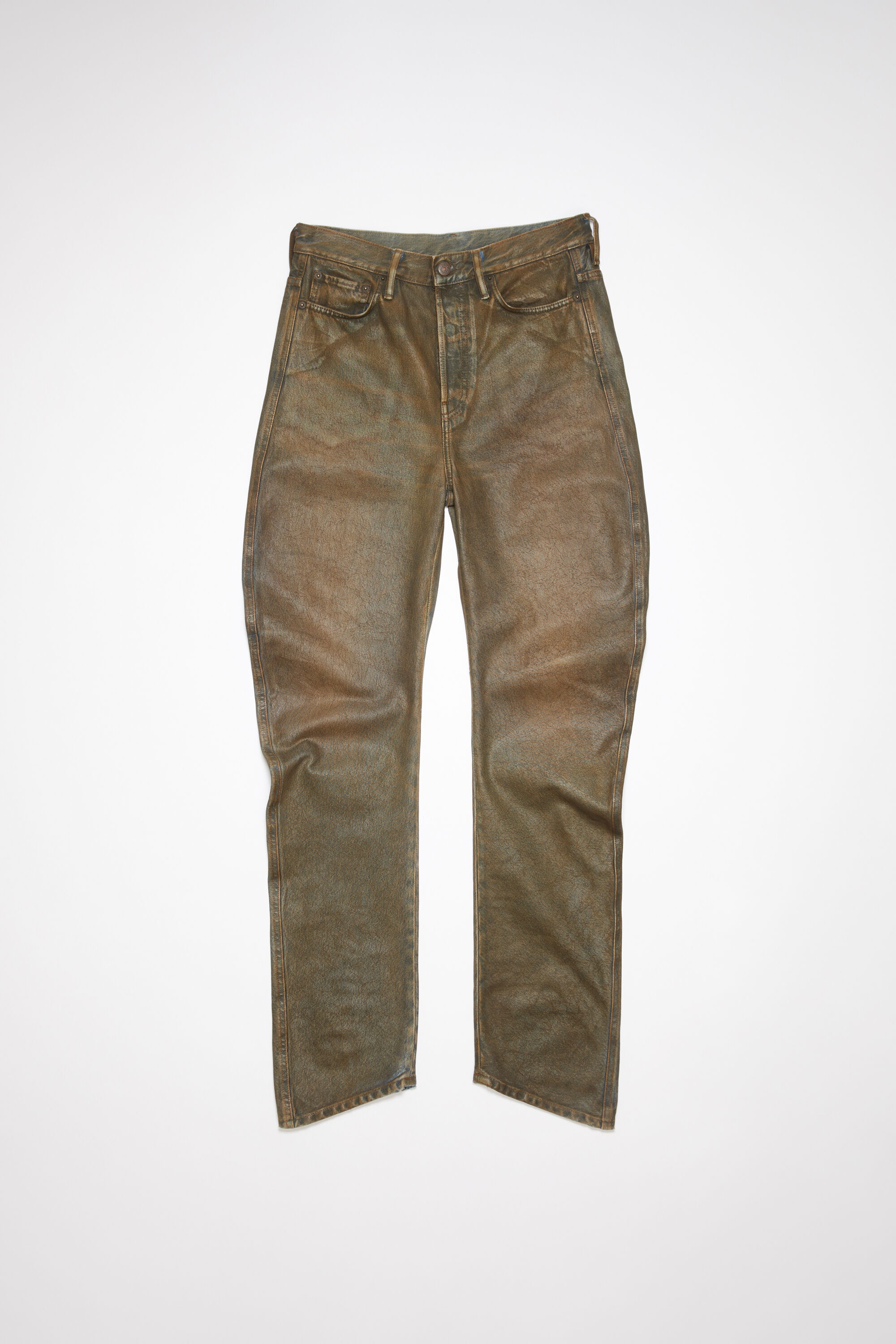 Acne Studios blue/beige jeans feature a 5-pocket denim construction with a high waist and long length. Detailed with a coated finish and made of cotton twill denim. - Relaxed fit - High waist - Extra long length - Coated finish - Zip fly - Model is 179 cm / 5′11 and wears a size 36 - Style ID: FN-WN-5PKT000313 - Shell: 100% Cotton