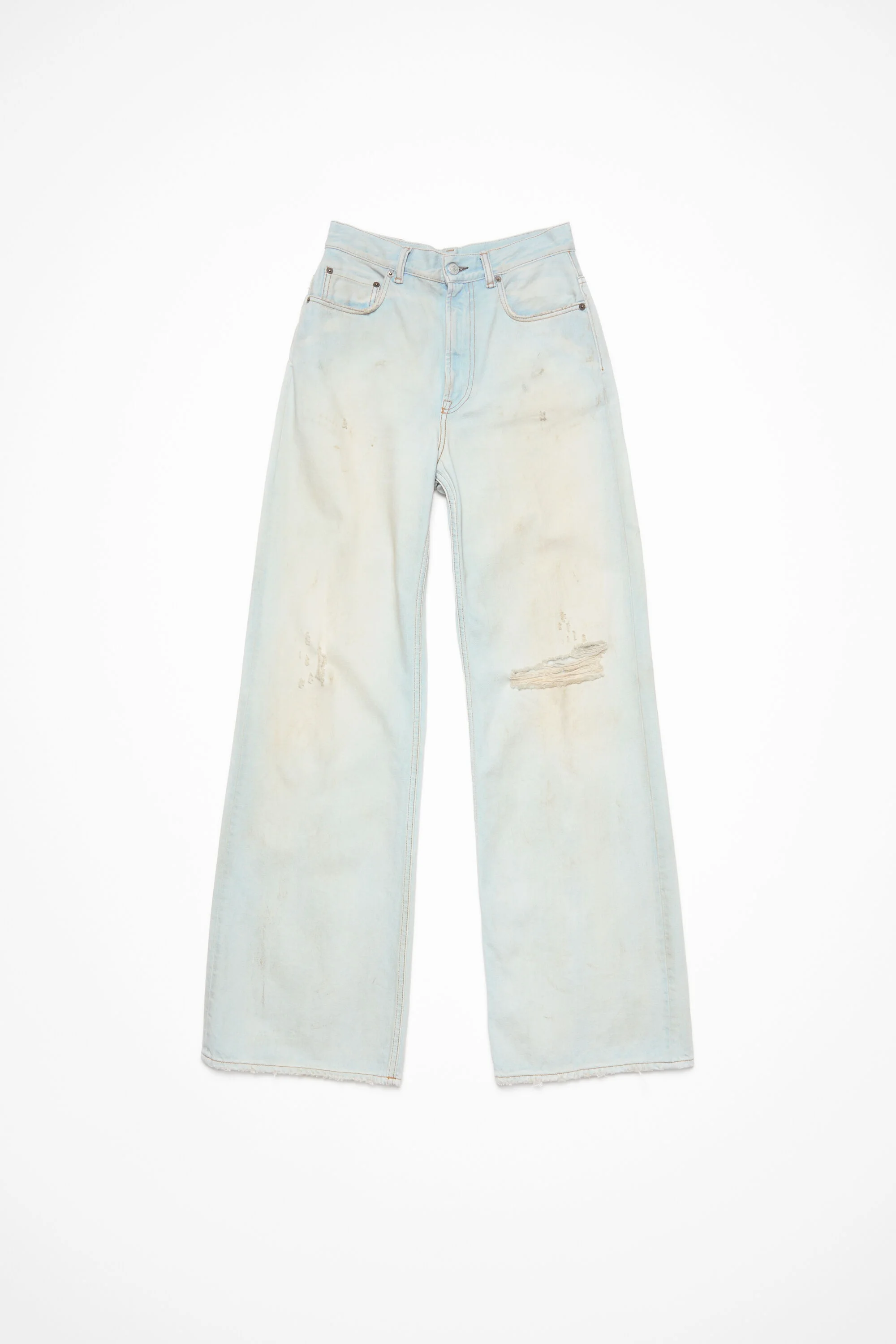 2022 jeans are cut to a relaxed fit with a high waist, wide leg and long length. Made of non stretch denim in pale wash on a bright indigo base with a coated and distressed details. - Relaxed fit - High waist - Wide leg - Long length - Distressed details - Leather logo patch - 5-pocket construction - Model is 179cm/ 5'11 and wears a size 27/34 - Style ID: Acne Studios 2022 Shorebreak - Shell: 100% Cotton, Patch: 100% Cow leather