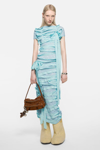 Short-sleeve dress featuring stitched ribbons and bows throughout, set against a contrasting printed star pattern base. Cut to a regular fit and mid-calf length. - Regular fit - Mid-calf length - Short sleeve - All over stitched ribbon and bow details - Model is 179 cm / 5'9 and wears a size S - Style ID: FN-WN-DRES001560 - Shell: 20% Elastane, 80% Nylon, Contrast: 100% Polyester
