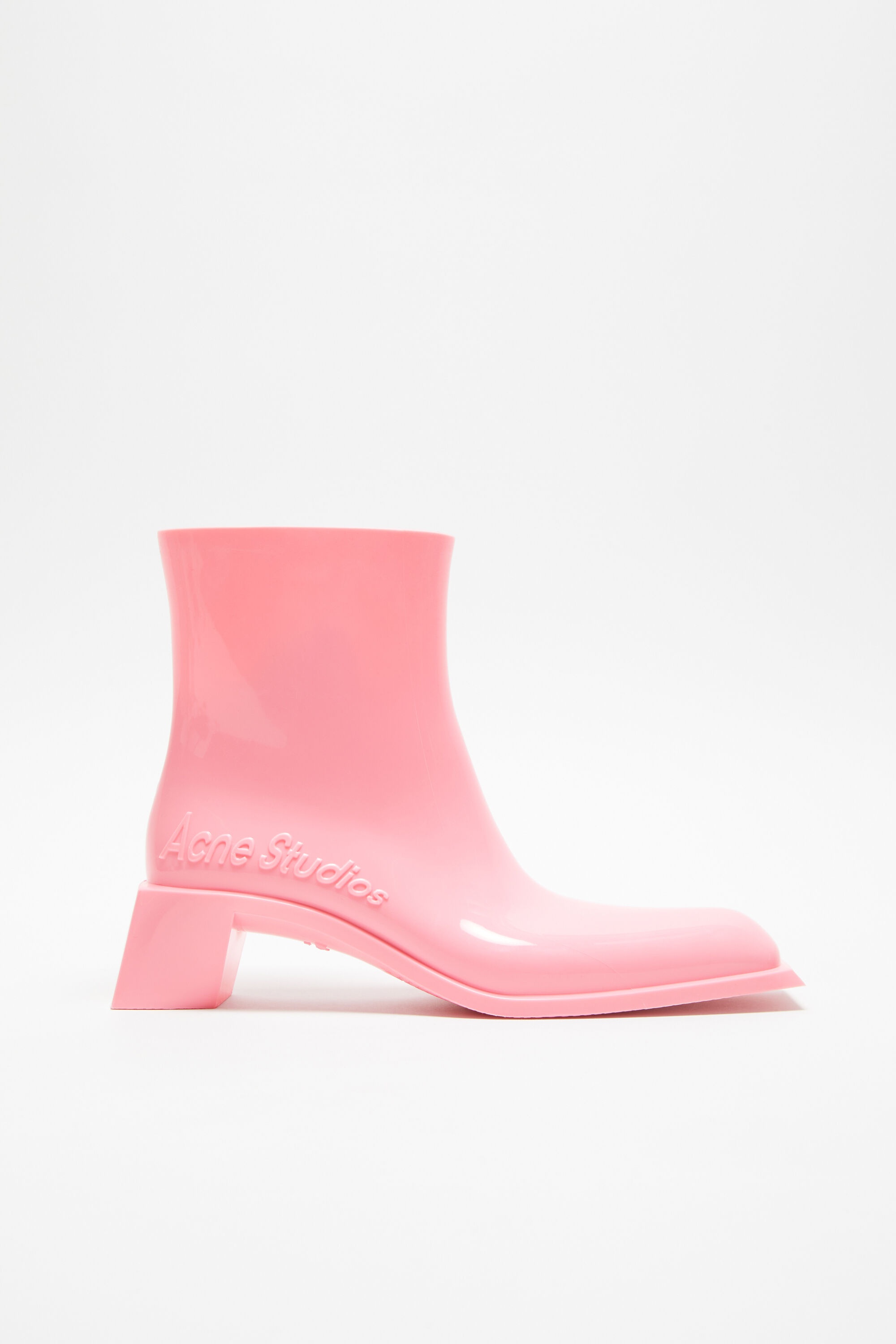 Pull on ankle boots feature a square pointed-toe and block heel crafted from rubber. Detailed with a debossed Acne Studios logo on the side. - Ankle boots - Pointed square toe - Block heel - Acne Studios debossed logo - Removable leather insoles - Sole height: 1 cm - Heel height: 5.5 cm - Style ID: Soap Boot W - Uppers: 100% Rubber