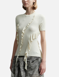- Acne Studios - Ruffle Draped Top - Long sleeve - Regular fit - Hip length - Draped neckline - Deep back with tie-up closure - Laser cut ruffles - Color: Ecru Beige - Material: 100% Polyester - See more Tops and Clothing SIZING - Model wears size S - Model measures: Height 179cm, Chest 32”/81cm, Waist 23’’/58.42cm, Hip 35’’/88.9cm