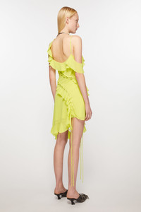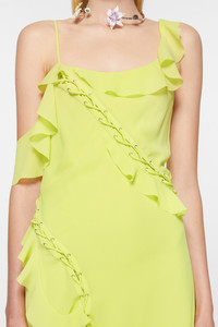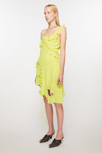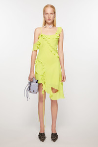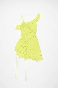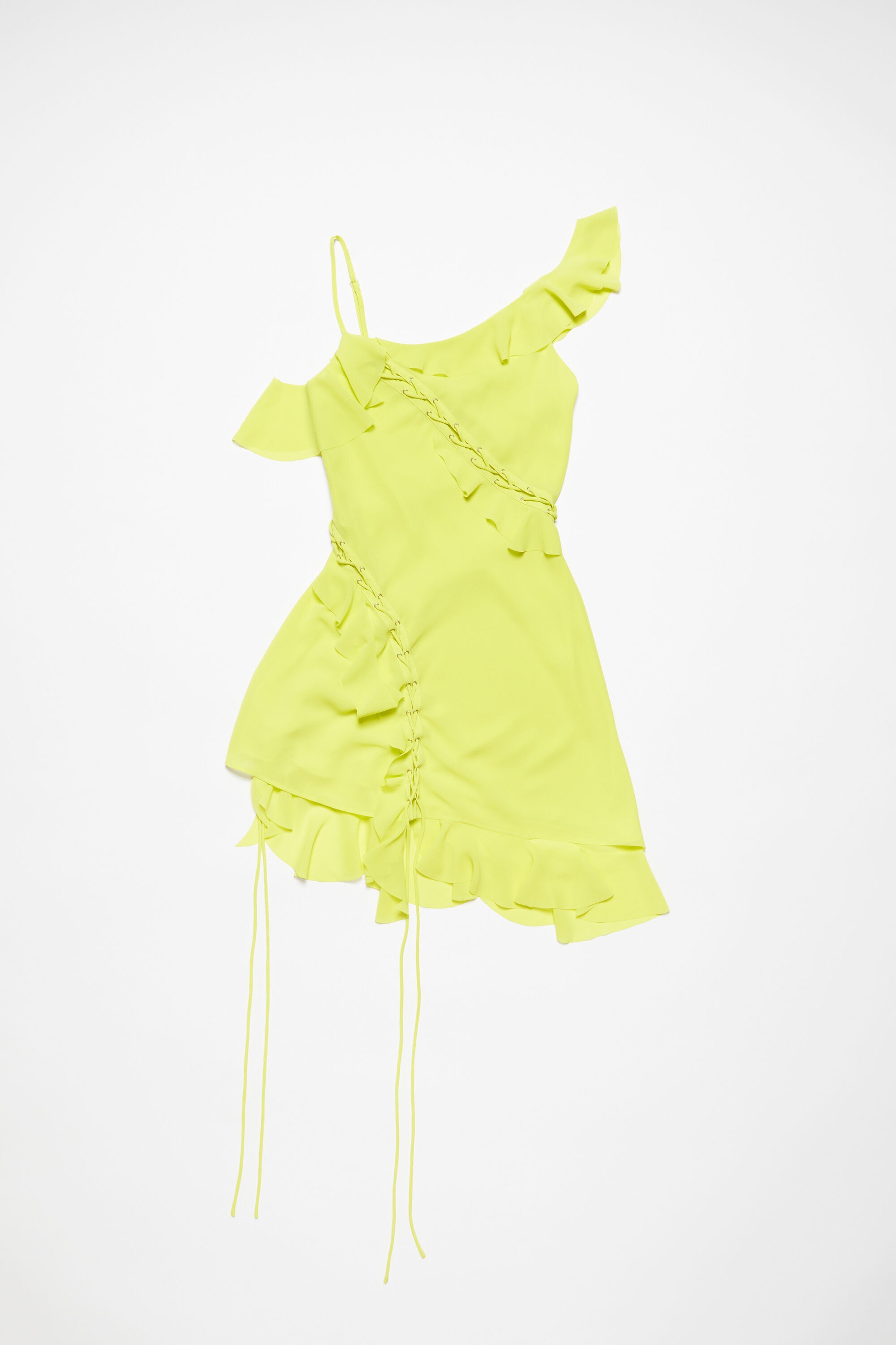 Strap dress is cut to a fitted fit and mid-thigh length with a draped irregular hem. Adorned with a draped neckline, ruffles and a lacing details. - Fitted fit - Irregular mid-thigh length - Strap - Draped neckline - Ruffles - Lacing details - Full lining - Model is 179 cm / 5′11 and wears a size 36 - Style ID: FN-WN-DRES001106 - Lining made from recycled polyester. - Shell: 100% Polyester, Lining: 100% Polyester