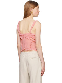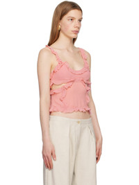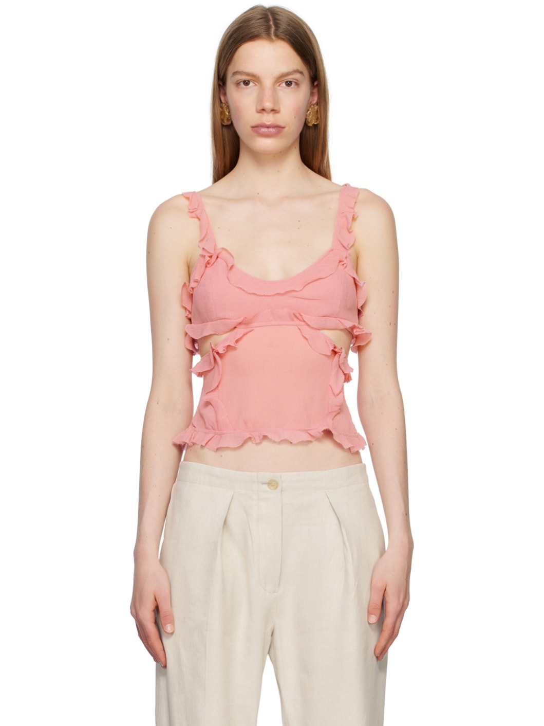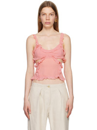 Viscose crepon tank top. Ruffled trim and raw edges throughout. · Scoop neck · Cutout at sides · Zip closure at back Supplier color: Rose pink