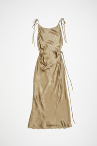 Bias cut dress is cut to a regular fit and a mid-length. Crafted from a fluid satin fabric with contrast top stitch detailing. Complete with a tie-up wrap construction and adjustable shoulder straps. - Regular fit - Mid-length - Adjustable shoulder straps - Contrast top stitching - Wrap tie-up closure - Model is 177 cm / 5′9 and wears a size 36 - Style ID: FN-WN-DRES001367 - Shell: 100% Acetate