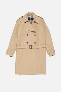 Trench coat crafted from smooth satin double-structured cotton. Contrast check under the collar and on belt details. Features a front button-up closure and a dropped belt at the hips. Complete with a leather logo tab at the back. Cut to a relaxed fit and below-knee length. Made from organically grown cotton and FSC® Viscose. - Relaxed fit - Below-knee length - Relaxed sleeve length - Below-knee length - Dropped belt at hips - Contrast check pattern lining - Leather logo tag on back neckline - Model is 178 cm / 5'8" and is wearing a size 36 - Style ID: FN-WN-OUTW001103 - Made from organically grown cotton. - Made in Italy - Shell: 100% Organic cotton, Lining: 100% Organic cotton, Sleeve Lining: 100% Preferred viscose