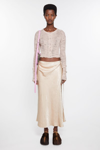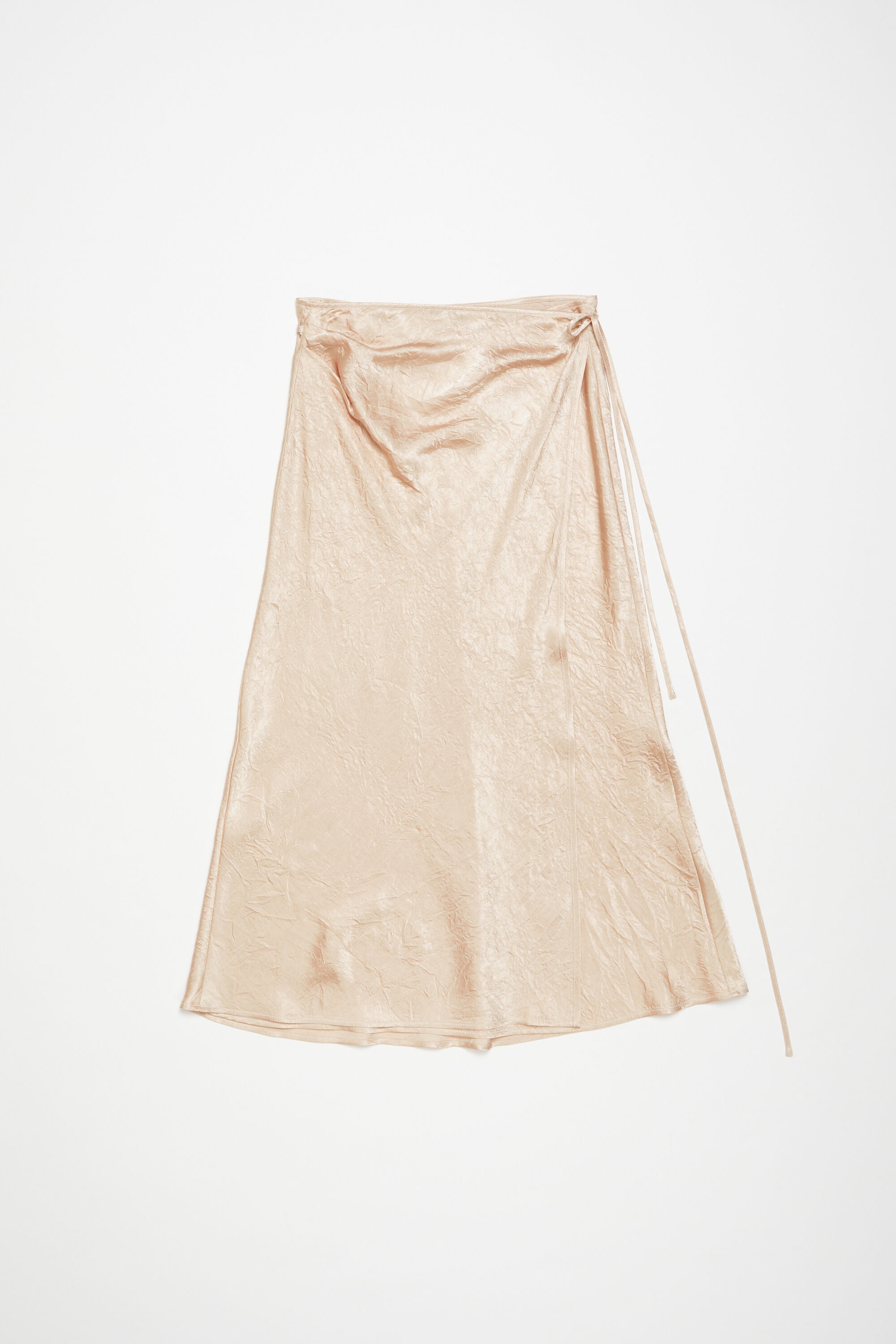 Fluid skirt is cut to a regular fit with a mid-waist and midi length. Crafted from a satin fabric with a wrap construction and knotted strap closure. Detailed with contrast top stitching. - Regular fit - Mid waist - Midi length - Wrap construction - Knotted strap closure - Contrast top stitch - Model is 180cm/ 5'11 and wears a size 36 - Style ID: FN-WN-SKIR000639 - Shell: 100% Acetate
