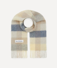 DETAILS Scarf Mohair-wool blend Fringed ends Checked design Embroidered Acne Studios logo Made in Italy COMPOSITION & SIZE 33% Alpaca; 25% Wool; 22% Nylon; 20% Mohair L: 250cm, W: 28cm