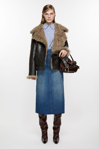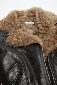 Double-breasted jacket crafted in aged leather features a contrast Torino shearling with a natural curl. Complete with front zipper closure and adjustable strap at the neckline. Cut to a relaxed fit and below hip length. - Relaxed fit - Hip length - Double-breasted - Metal plaque logo back neckline - Zipper closure - Neckline adjustable straps - Front pockets - Model is 178cm/ 5'10 and wears a size 36 - Style ID: FN-WN-LEAT000402 - Shell: 100% Preferred lamb shearling, Pocket Lining: 100% Cotton