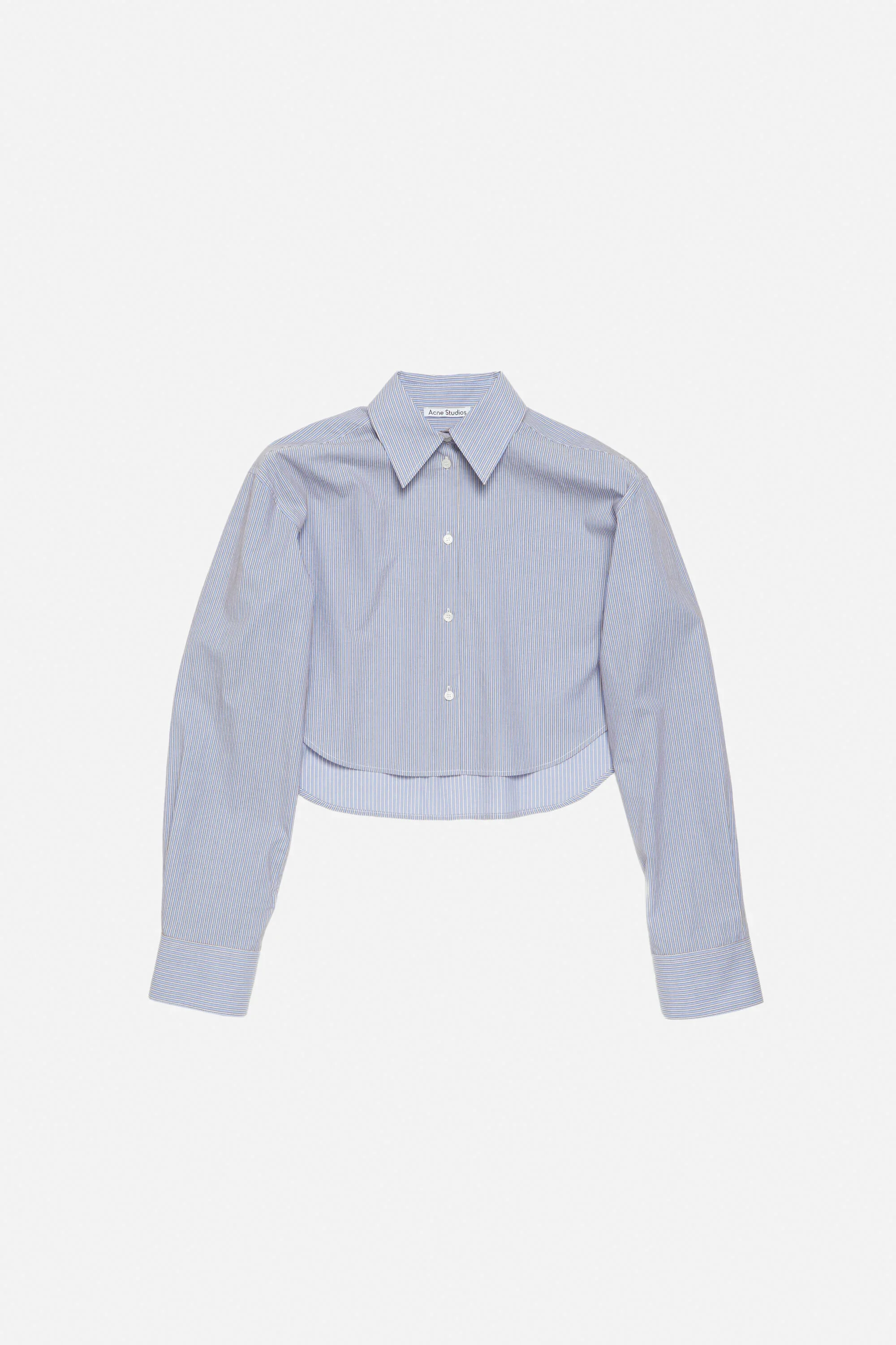 Button-up shirt features a textured jacquard construction crafted from poplin cotton. Detailed with an Acne Studios stamp logo at the back. Cut to a relaxed fit and cropped length. - Relaxed fit - Below waist - Button-up closure - Acne Studios logo at the back - Model is 178cm/ 5'10 and wears a size 36 - Style ID: FN-WN-BLOU001060 - Made from organically grown cotton. - Shell: 100% Cotton