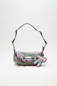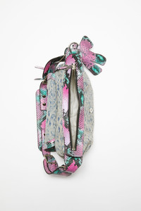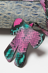 Shoulder bag features a monogram in denim with a bleached effect, python print trims and stud details. Complete with an Acne Studios logo patch, bow-shaped mirror attachment and adjustable shoulder strap. - Monogram in bleached denim - Python print trims and studs - Acne Studios logo patch - Adjustable strap with buckle - Measurements: 14 cm; 27 cm; 8 cm - Style ID: FN-WN-BAGS000420 - Shell: 100% Cotton, Lining: 65% Polyester, 35% Cotton