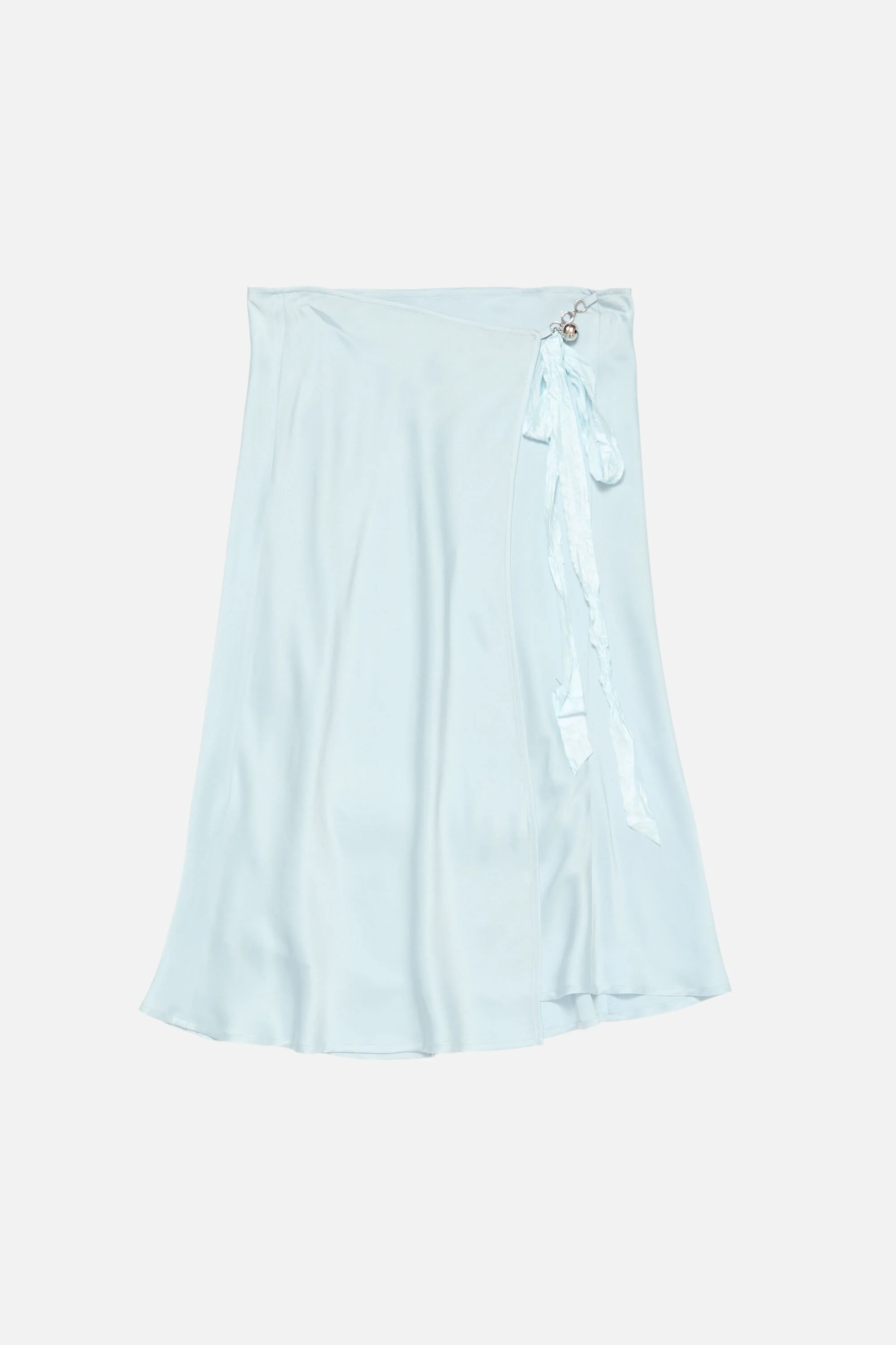 Silk A-line skirt with a wrap construction, featuring silver-toned bell and hardware details with a tonal tie-up closure. Cut to a regular fit and mid-calf length. - Regular fit - Mid waist - Mid-calf length - Wrap construction - Tonal tie-up closure - Silver bell detail - Model is 178 cm / 5'8 and wears a size 36 - Style ID: FN-WN-SKIR000885 - Shell: 100% Silk, Contrast: 100% Viscose