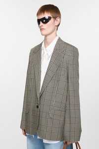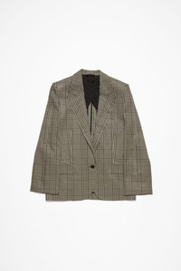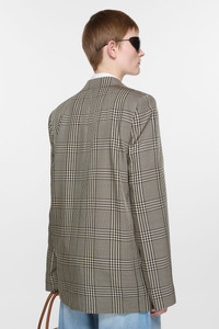 Single-breasted suit jacket features a check bicolour pattern, crafted from a wool blend. Cut to a regular fit with structured shoulders and below hip length. - Single-breasted - Below hip length - Single button closure - Front and internal pocket - Back vent - Model is 177 cm / 5'10 and wears a size 36 - Style ID: FN-WN-SUIT000634 - Shell: 52% Viscose, 48% Wool, Lining: 100% Viscose