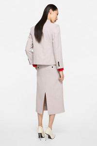 Single-breasted jacket crafted from soft, fluid fabric with a pinstripe pattern. Complete with a center front button closure and front flap pockets. Cut to a fitted silhouette and below-hip length. - Fitted - Below-hip length - Single-breasted - Center front button closure - Front flap pockets - Model is 178 cm / 5'8 and wears a size 36 - Style ID: FN-WN-SUIT000643 - Made in Italy - Shell: 97% Viscose, 2% Elastane, 1% Polyester, Lining: 50% Viscose, 50% Acetate