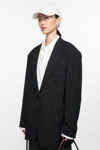 Single-breasted suit jacket crafted in a dense sartorial pinstripe fabric. Detailed with a single front button closure, chest and side pockets. Cut to a relaxed fit and hip length. - Relaxed fit - Hip length - Single-breasted - Chest, front and internal pockets - Model is 180cm/ 5'11 and wears a size 36 - Style ID: FN-WN-SUIT000613 - Shell: 97% Preferred viscose, 2% Elastane, 1% Polyester, Lining: 50% Acetate, 50% Preferred viscose