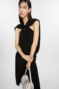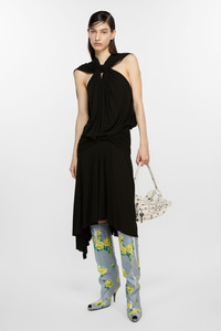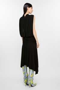 Dress from features a wrapped construction at the neckline and waist with a gathered effect and dropped appearance. Crafted from a lightweight fluid crepe jersey. Cut to a regular fit and asymmetric mid-length. - Regular fit - Mid calf length asymmetric - Wrapped and gathered construction - Hook & eye and zipper back closure - Female model is 177 cm / 5'10 and wears a size 36 - Style ID: FN-WN-DRES001441 - Shell: 100% Viscose