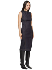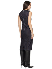 Stretch denim dress. · Crewneck · Darts at front and back · Zip closure at back collar · Central vent at back hem · Unlined · Contrast stitching in tan Supplier color: Indigo blue