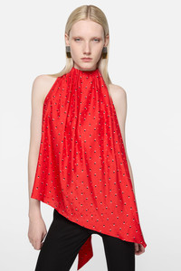 Sleeveless blouse with a bias cut, featuring a gathered neckline, a bow detail on the side of the neck, and an asymmetric hem. Crafted from 100% silk with a soft, fluid feel and all-over jacquard dots. Cut to a regular fit and hip length. - Regular fit - Hip length - Bow detail - Asymmetric hem - Jacquard dots - Model is 178 cm / 5'8 and wears a size 36 - Style ID: FN-WN-BLOU001214 - Made in Italy - Shell: 100% Silk