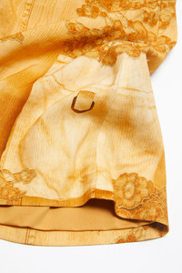 Strap dress is crafted from a linen blend, adorned with a seasonal trompe l'oeil animation print. Cut to a fitted fit and mid-thigh length. - Fitted fit - Mid-thigh length - Adjustable shoulder straps - Trompe l'oeil print - Pleated waist - Side zipper closure - Fully lined - Model is 178 cm / 5′10 and wears a size 36 - Style ID: FN-WN-DRES001033 - Shell: 59% Linen, 39% Viscose, 2% Elastane, Lining: 88% Polyester, 12% Elastane
