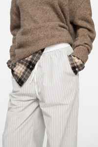 Trousers crafted from heavy poplin shirting fabric with a seasonal striped pattern. Designed with an elasticated waistband and drawstring closure. Complete with side pockets and embroidered Face logo. Cut to a regular fit with a mid waist and long leg. - Regular fit - Mid waist - Straight leg - Drawstring closure - Side pockets - Embroidered Face logo - Female model is 178 cm / 5'8 and wearing size XS - Male model is 187 cm / 6'1 and wearing size M - Style ID: FA-UX-TROU000133 - Made from organically grown cotton - Shell: 100% Cotton, Contrast: 100% Cotton