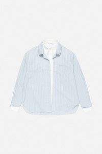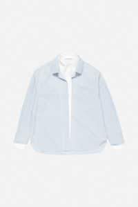 Button-up shirt features a double-layered construction with a contrasting white underlayer and striped overlayer. Crafted from classic shirting, it reveals underlayer details at the collar and cuffs. Complete with a chest pocket. Cut to a regular fit and hip length. - Layered construction - Regular fit - Hip-length - Front chest pocket - Button-up closure - Model is 178 cm / 5'8 and wears a size 36 - Style ID: FN-WN-BLOU001174 - Shell: 100% Cotton, Contrast: 100% Cotton