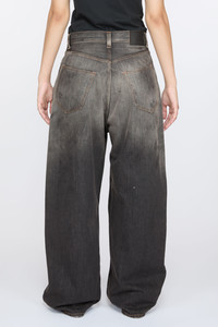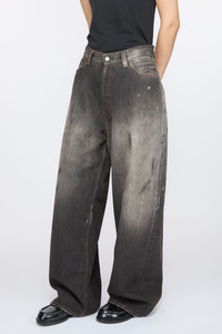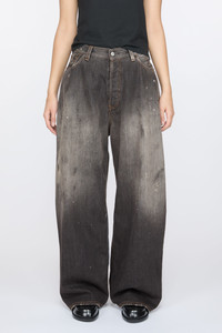 2023 jeans are cut to a super baggy fit with a mid waist, super wide leg and long length. Made of non stretch denim in a dark wash with tinted and painted mark detailings. - Supper baggy fit - Mid waist - Super wide leg - Long length - 5-pocket denim construction - Button fly - Model is 180cm/ 5'11 and wears a size 36 - Style ID: Acne Studios 2023F FN Black Trafalgar - Made from organically grown cotton. - Shell: 100% Cotton, Patch: 100% Cow leather