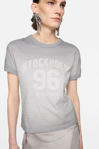 Crewneck, short-sleeve t-shirt with seasonal logo artwork, ribbed trims, and a sprayed vintage finish. Crafted from lightweight cotton jersey and cut to a fitted, below-waist length. - Fitted - Below-waist length - Seasonal logo artwork - Sprayed vintage look - Model is 178 cm / 5'8 and wears a size S - Style ID: FN-WN-TSHI000778 - Made from organically grown cotton - Shell: 100% Cotton