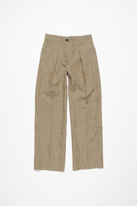 Tailored trousers are cut to a relaxed fit with a high waist, wide leg and long length. Crafted from a linen blend with a check pattern and leg pleats. Complete with an elasticated waist at the back. - Relaxed fit - High waist - Wide leg - Long length - Leg pleats - Elasticated waist back - Side and back pockets - Zip fly - Model is 178 cm / 5′10 and wears a size 36 - Style ID: FN-WN-TROU001175 - Shell: 60% Linen, 26% Viscose, 14% Polyester, Pocket Lining: 100% Cotton