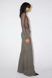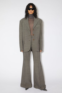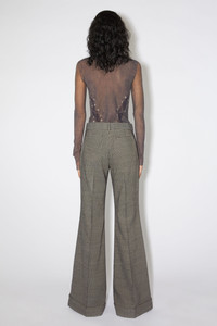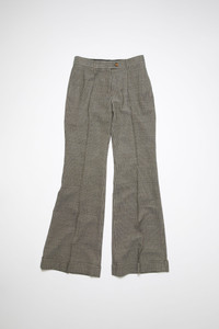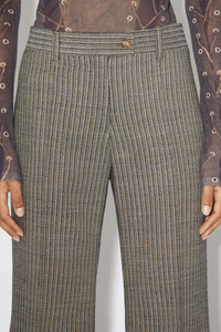 Acne Studios multi taupe tailored trousers feature a pinstripe pattern with topstitched front leg pleats and fold-up hem, crafted from a wool blend. Complete with side and back welt pockets. Cut to a regular fit with a mid-waist, flared leg and long length. - Regular fit - Mid waist - Flared leg - Long length - Topstitched front leg pleats - Fold up hem - Side pockets - Back welt pockets - Zip fly with button closure - Model is 179 cm / 5′11 and wears a size 36 - Style ID: FN-WN-TROU001110 - Shell: 87% Wool, 12% Viscose, 1% Elastane, Pocket Lining: 100% Cotton
