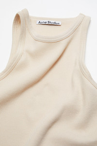 Tank top is cut to a fitted unisex fit and below waist length. Crafted from waffle cotton with a garment-dyed finish. Detailed with an Acne Studios logo patch on the centre back. - Fitted unisex fit - Below waist length - Acne Studios rubber patch - Female model is 178 cm / 5′10 and wears a size XS - Male model is 187 cm / 6′2 and wears a size M - Style ID: FN-UX-TSHI000024 - Made from organically grown cotton. - Shell: 100% Cotton
